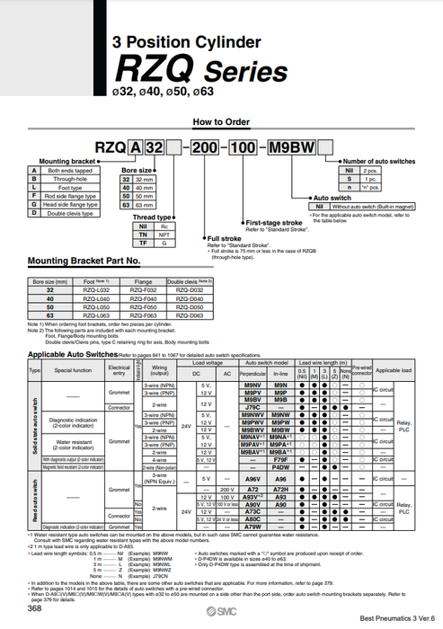 [SMC Pneumatics]Stopper Cylinder RZQF32-140-75