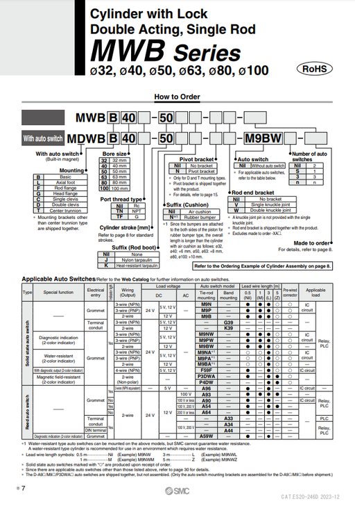 [SMC Pneumatics]Lock Cylinder MDWBB32-100