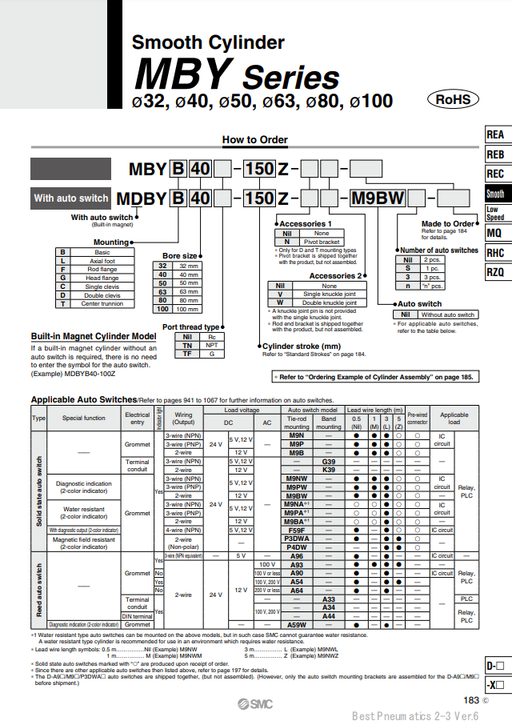 [SMC Pneumatics]Smooth Cylinder MDBYB32-100Z
