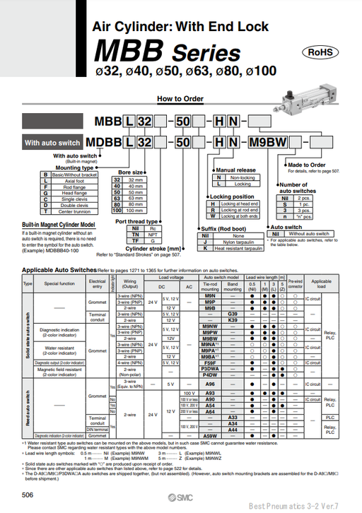 [SMC Pneumatics]Air Cylinder MBKB100-200Z