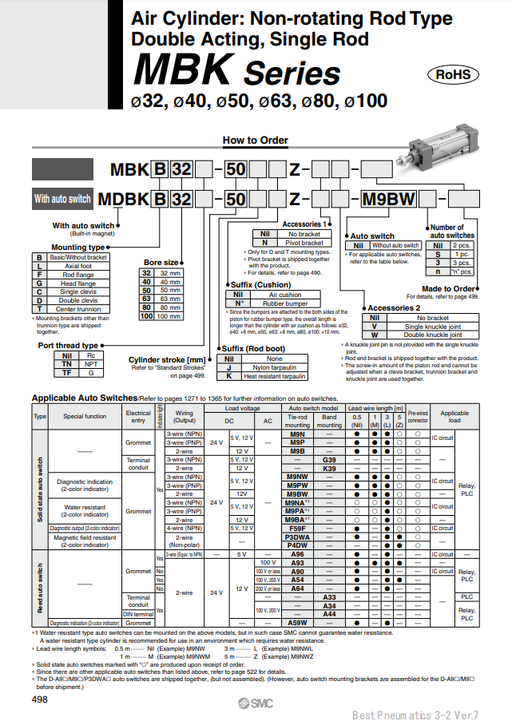 [SMC Pneumatics]Air Cylinder MDBKB50-500Z