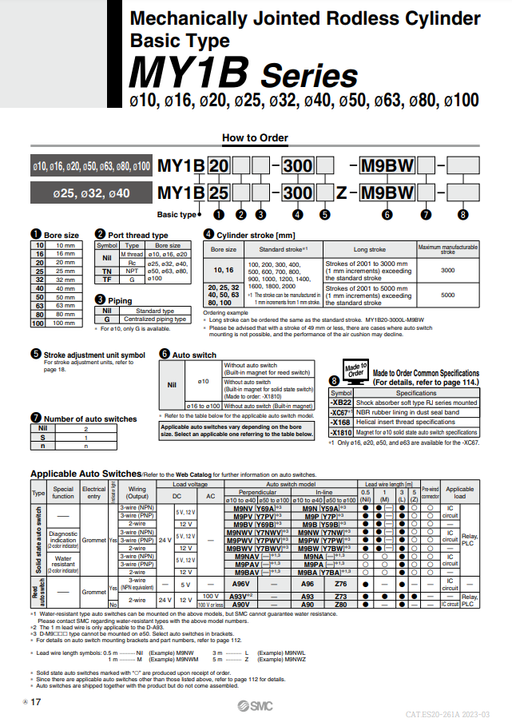 [SMC Pneumatics]Mechanically Jointed Rodless Cylinder MY1B32-300Z