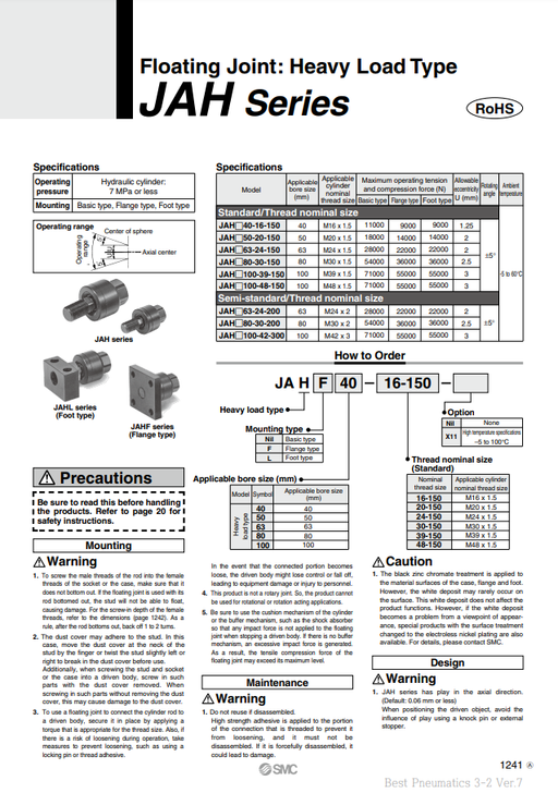 [SMC Pneumatics]Floating Joint JAH40-16-150