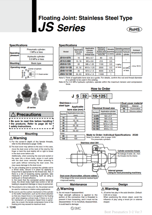 [SMC Pneumatics]Floating Joint JS63-18-150
