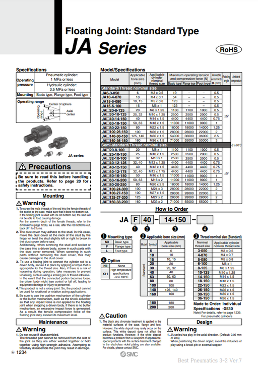 [SMC Pneumatics]Floating Joint JA40-14-150