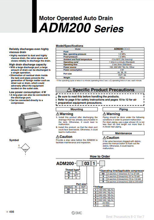 [SMC Pneumatics]Motor Operated Auto Drain ADM200-042