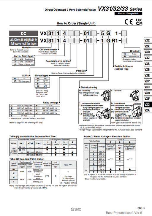 [SMC Pneumatics]Solenoid Valve VX3334G-03-5DZ1-B
