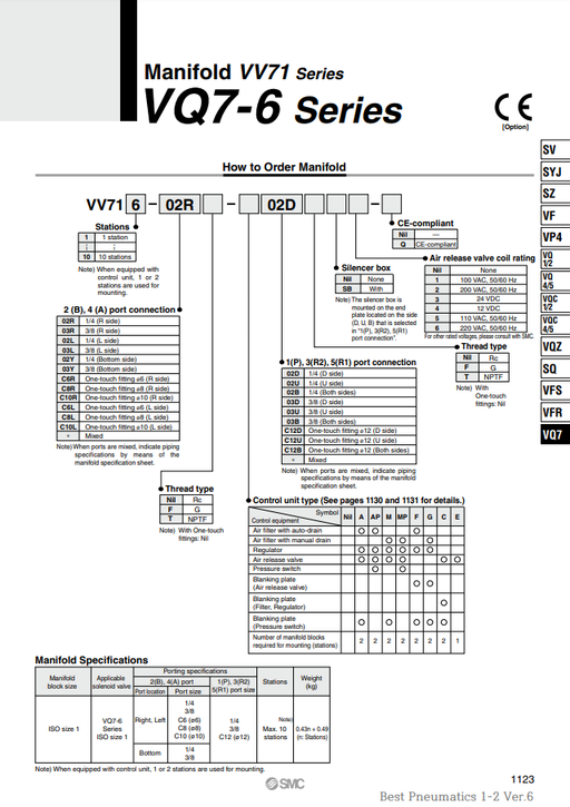 [SMC Pneumatics]Solenoid Valve VQ7-8-FHG-D-6NR