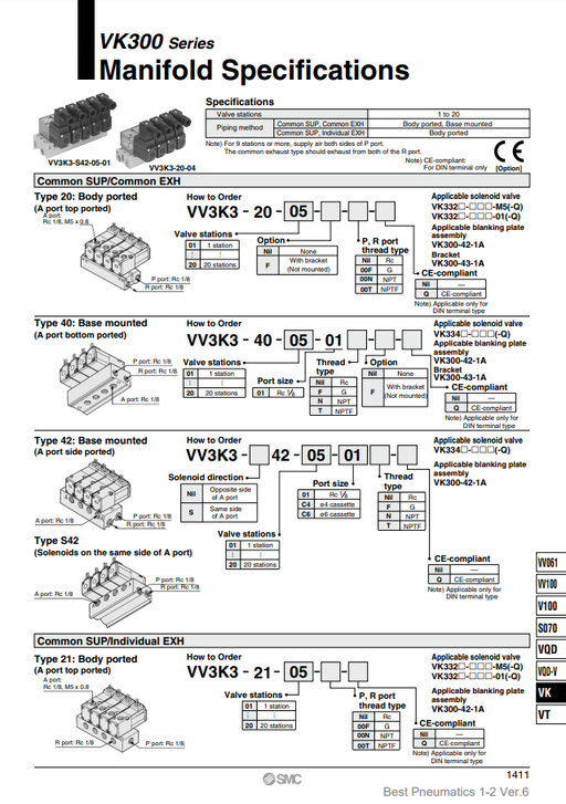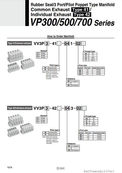 [SMC Pneumatics]Manifold VV3P3-41R-111-02