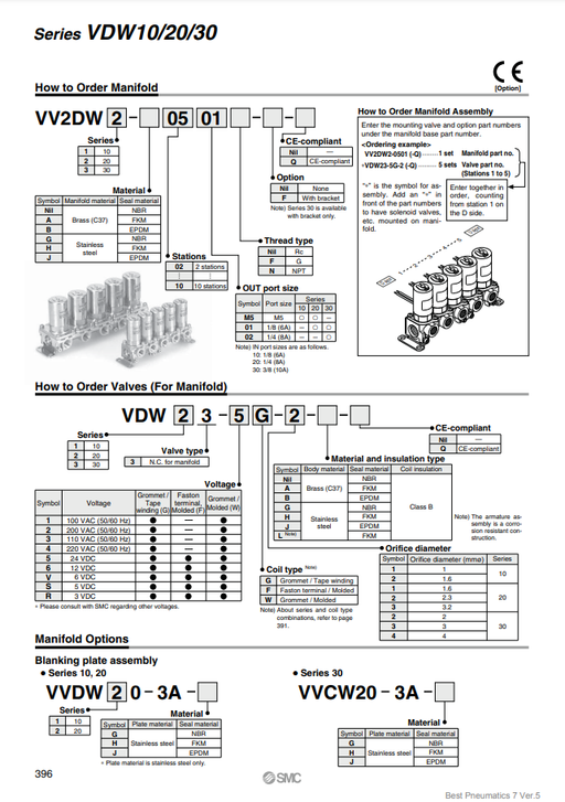 [SMC Pneumatics]Manifold VV3K3-20-09