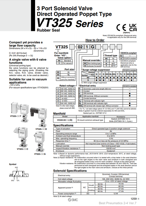 [SMC Pneumatics]Solenoid Valve VT325V-032G