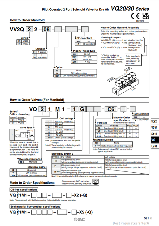 [SMC Pneumatics]Manifold VV2Q22-02-DO