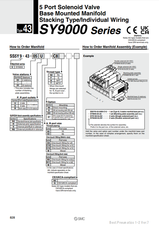 [SMC Pneumatics]Manifold SS5Y9-43-08BR-C12