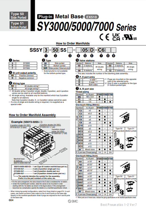 [SMC Pneumatics]Manifold SS5Y3-50PG2-06D-C4