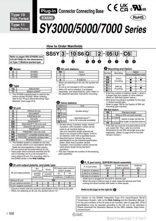 [SMC Pneumatics]Manifold SS5Y5-10S6V2-02U-C8