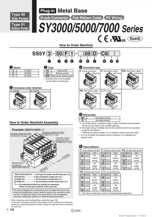 [SMC Pneumatics]Manifold SS5Y5-50F1-S05D-C6D