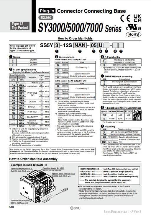 [SMC Pneumatics]Manifold SS5Y5-12SVBN-02D