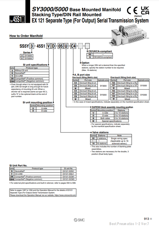 [SMC Pneumatics]Manifold SS5Y5-45S1R1U-05B-C6