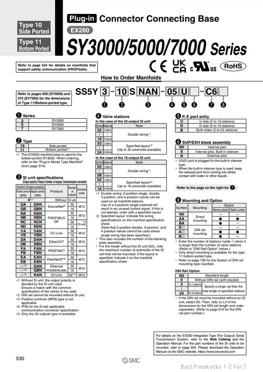 [SMC Pneumatics]Manifold SS5Y3-10SDAN-08BS-C6