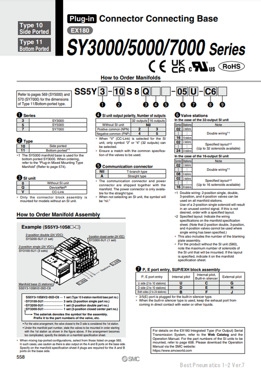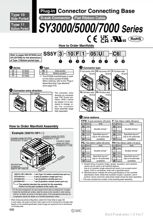 [SMC Pneumatics]Manifold SS5Y7-10S0-08B-C8