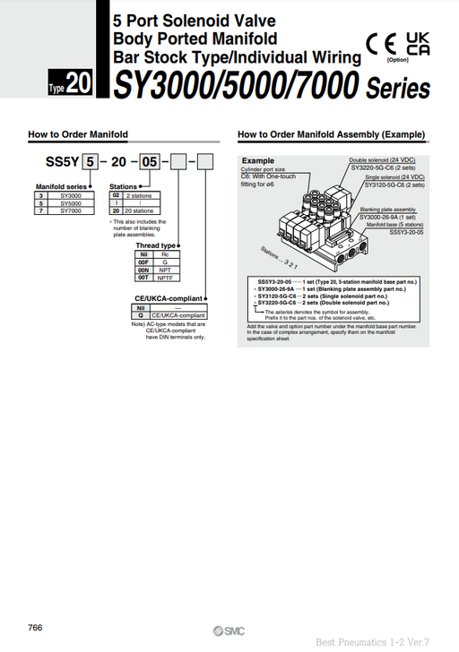[SMC Pneumatics]Manifold SS5Y5-20-17