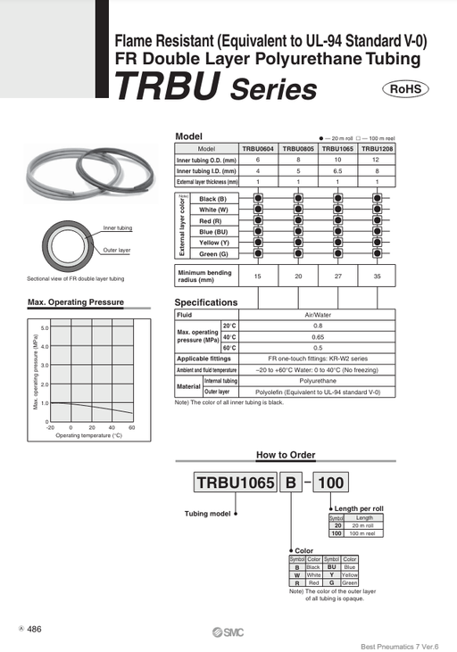 • [SMC Pneumatics]FR Double Layer Polyurethane Tubing TRBU0604R-100