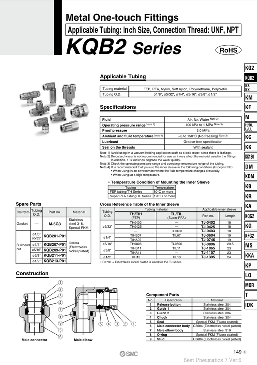 [SMC Pneumatics]One-touch Fitting KQB2L01-N01S