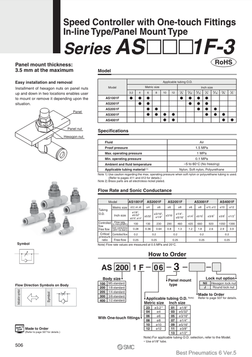 [SMC Pneumatics]Speed Controller AS3201F-02-06A