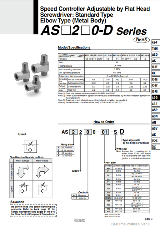 [SMC Pneumatics]Speed Controller AS2200-N02-SD