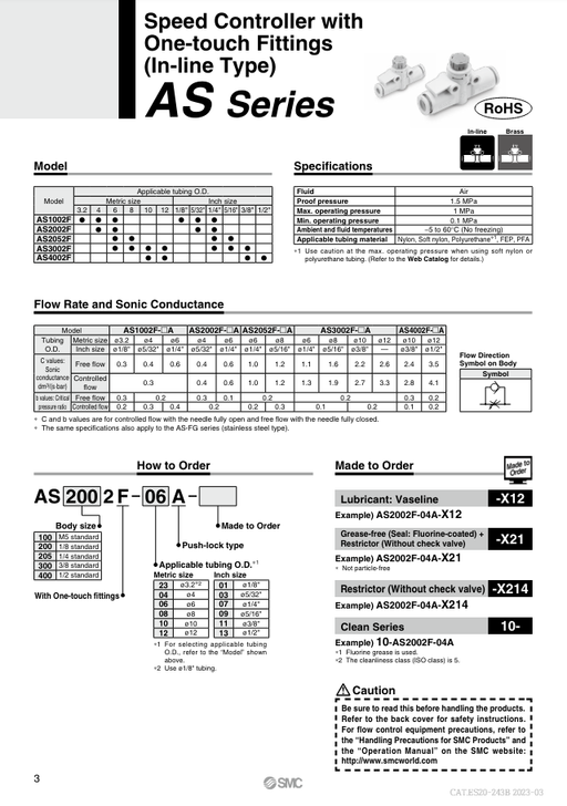 [SMC Pneumatics]Speed Controller AS3000-02-L