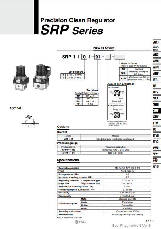 [SMC Pneumatics]Clean Regulator SRP1111-M5