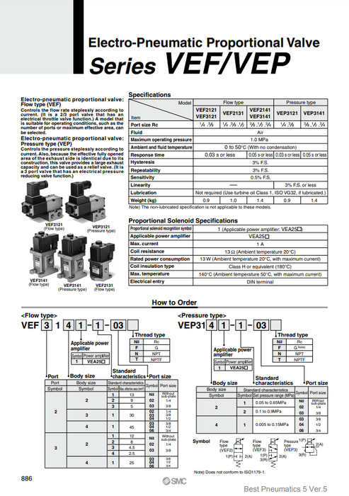 [SMC Pneumatics]Electro-pneumatic Proportional Valve VEP3121-2-02