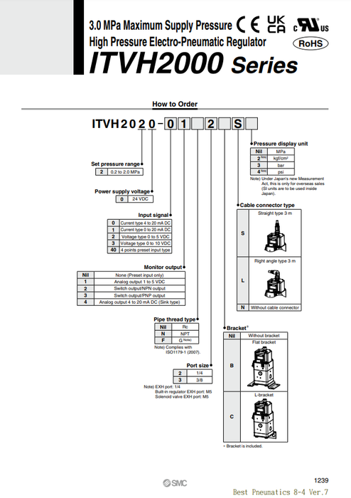 [SMC Pneumatics]Electro-pneumatic Regulator ITVH2020-212CS3