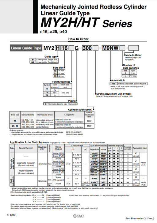 • [SMC Pneumatics]Mechanically Jointed Rodless Cylinder MY2HT16G-400L