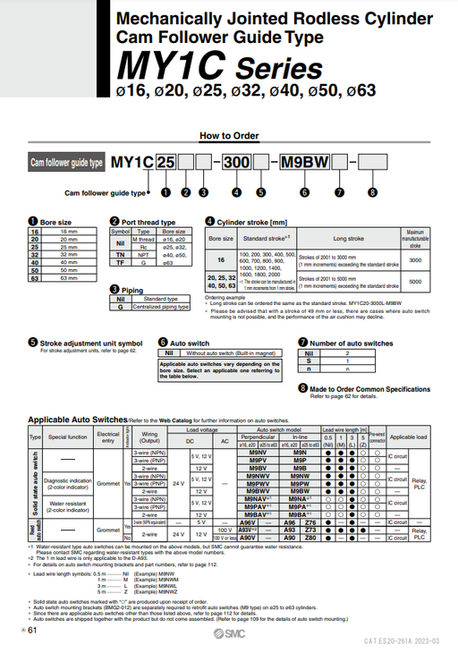 • [SMC Pneumatics]Mechanically Jointed Rodless Cylinder MY1C63-1200