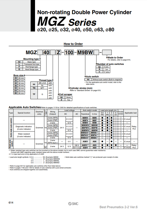 • [SMC Pneumatics]Non-rotating Double Power Cylinder MGZ32-50