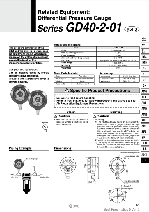 • [SMC Pneumatics]Differential Pressure Gauge GD40-2-01