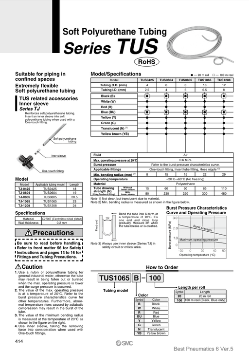 • [SMC Pneumatics]Soft Polyurethane Tubing TUS0604B-100