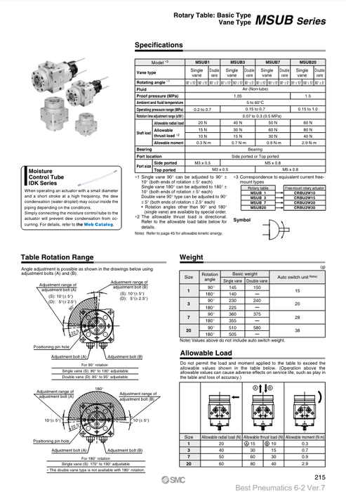 [SMC Pneumatics]Rotary Table MSUB7-180S