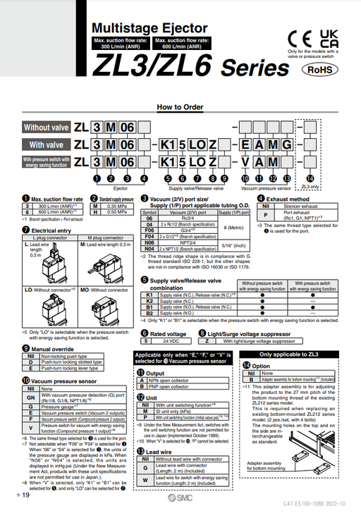 [SMC Pneumatics]Multistage Ejector ZL3M06-G