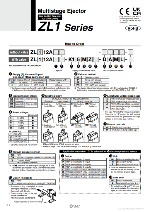 [SMC Pneumatics]Multistage Ejector ZL112AP-K15MZ-DAML