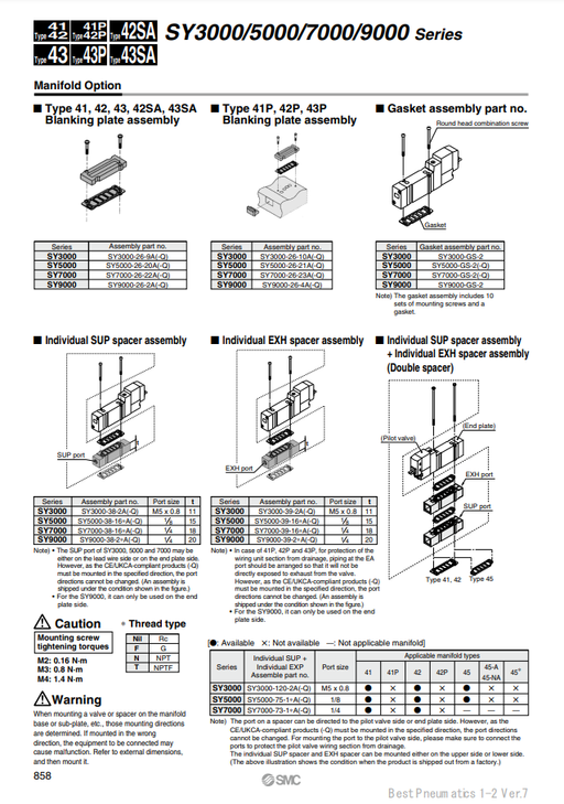 [SMC Pneumatics]Spacer Assembly SY9000-38-1A