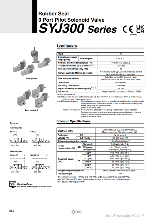 [SMC Pneumatics]Solenoid Valve SYJ312-5L-M3