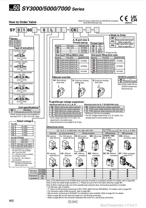 [SMC Pneumatics]Solenoid Valve SY5160-5MOU-C8