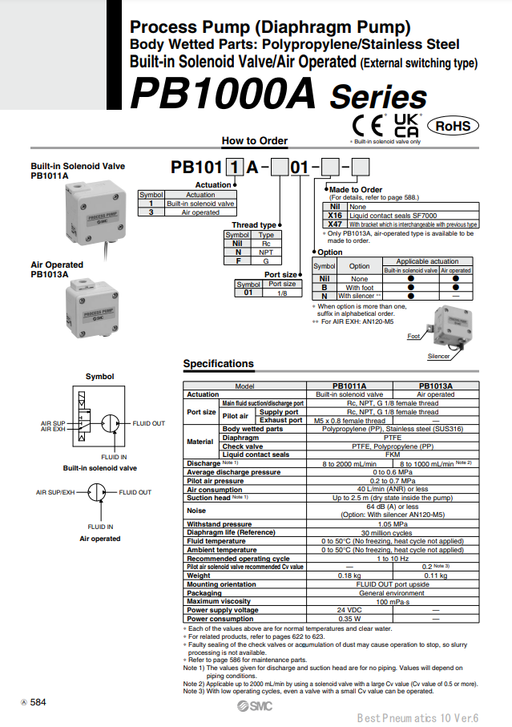 [SMC Pneumatics]Process Pump PB1011A-N01-B