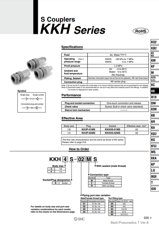 [SMC Pneumatics]S Couplers KKH4S-02MS