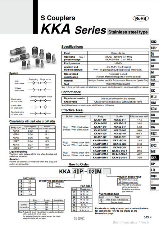 [SMC Pneumatics]S Couplers KKA7S-06M