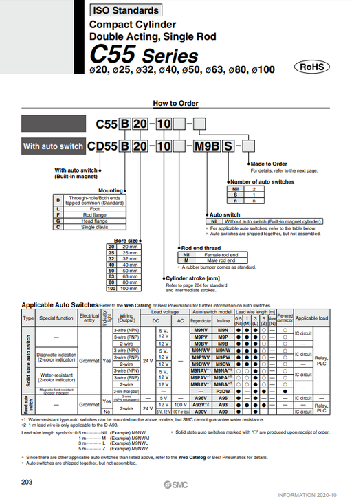 [SMC Pneumatics]Compact Cylinder C55B32-50M