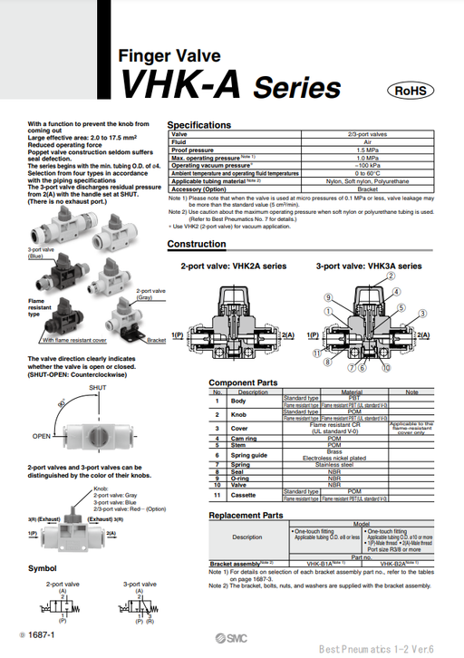 [SMC Pneumatics]Finger Valve VHK3A-08F-08FR