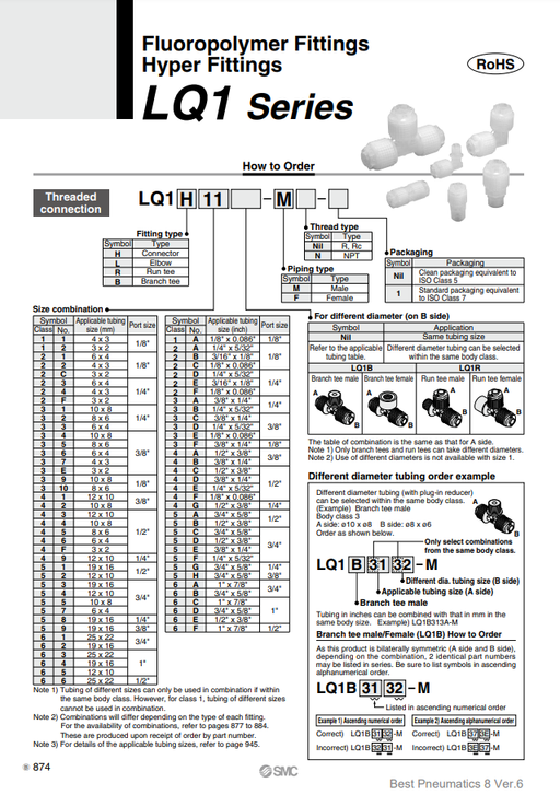 [SMC Pneumatics]Fluoropolymer Fittings LQ1L5C-M